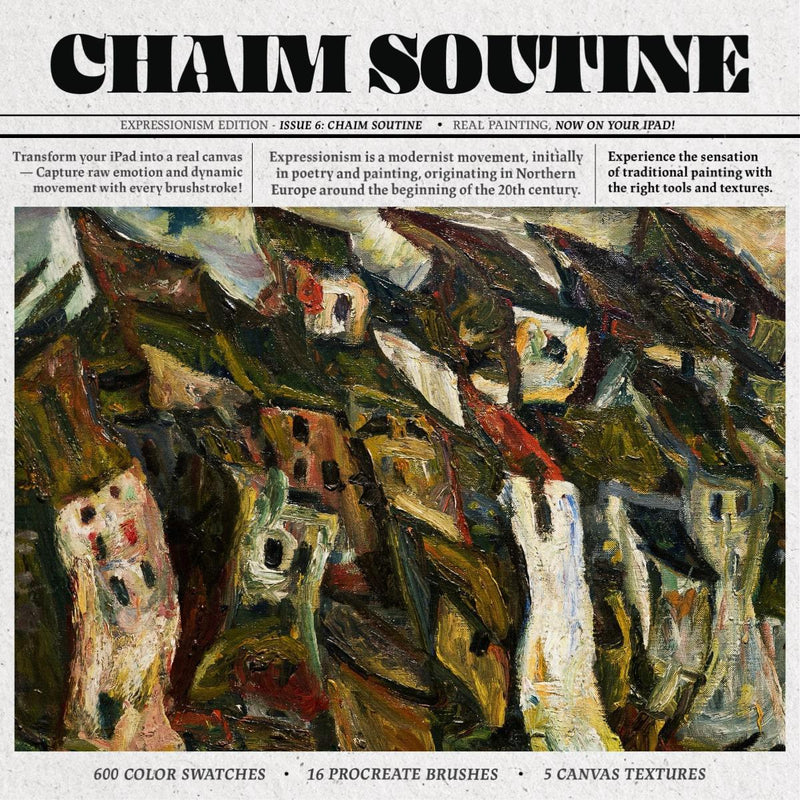 The Chaim Soutine Procreate Kit is a toolset designed for illustrators and graphic designers, inspired by the Expressionism movement. It includes 600 Procreate color swatches, 16 Procreate brushes, 5 canvas textures, and offers free 24/7 support. This kit requires an Apple iPad, Apple Pencil, and the Procreate App for iPad. Please note, these brushes are only compatible with Procreate for iPad.