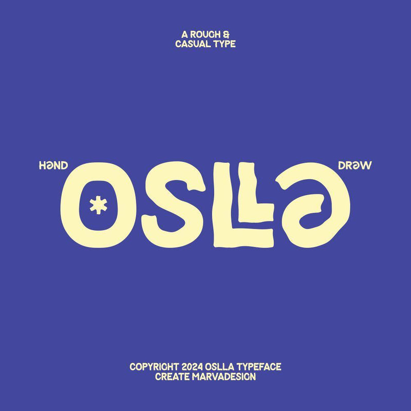 Oslla is a bold and dynamic font featuring a Rough and Casual style, designed with abstract wave brushes for distinct strokes. It includes unique characters, alternatives, and ligatures, making it a versatile choice for various design applications.