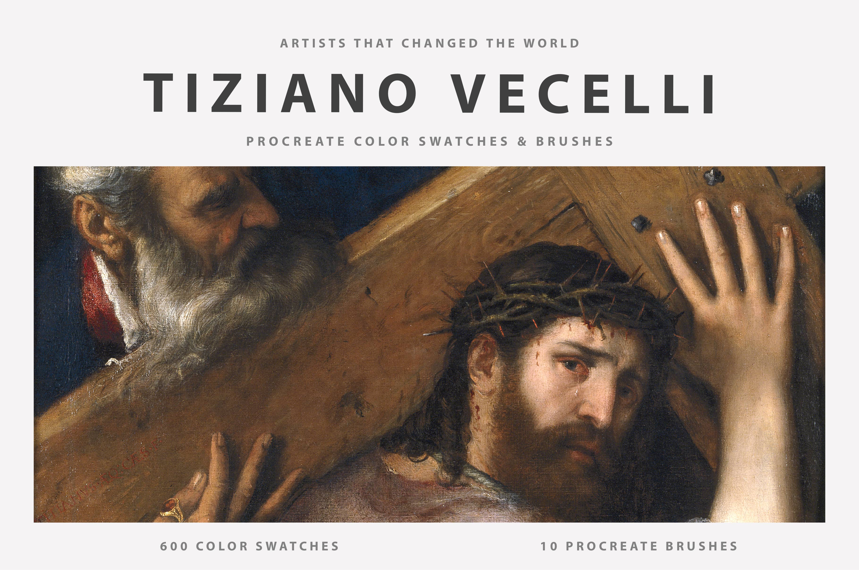 The Titian Procreate Kit includes 600 color swatches and 10 brushes inspired by Tiziano Vecelli's paintings, designed for illustrators and graphic designers. It also provides a Spotify playlist link and 24/7 support, ensuring compatibility with Procreate.