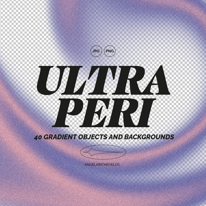The ULTRA PERI Gradient Set is a collection of lilac-themed graphic elements, including 20 textured elements, 20 textured gradient backgrounds, and 4 bonus solid textured backgrounds. Compatible with Photoshop, Affinity Photo, Procreate, and Canva, it offers a variety of abstract gradients and backgrounds for graphic design projects.