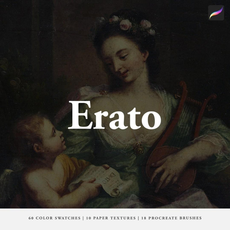 The Erato Procreate Kit offers a comprehensive collection for digital artists, featuring 10 customizable paper textures, 18 watercolor Procreate brushes, and 60 color swatches. Designed for Procreate, this kit includes step-by-step instructions for creating unique paper textures, ensuring a versatile and high-quality experience for users.