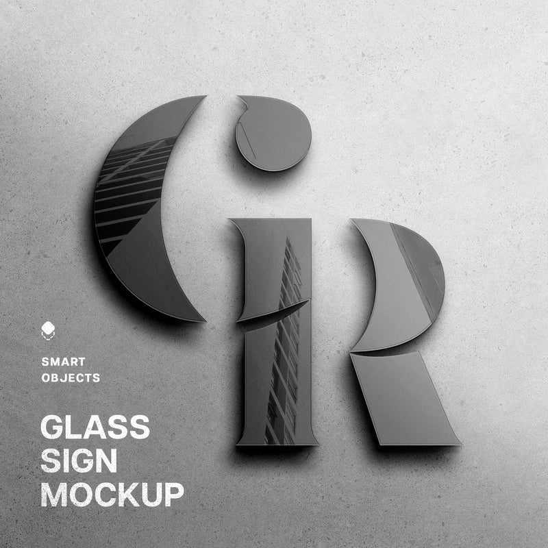 The Glass Sign 3D Mockup is a high-quality PSD file (4500x3000 px, 300 dpi) designed for use in Photoshop, featuring Smart Object Layers that allow for easy text customization. It includes Adobe library fonts and can accommodate any typeface, along with a help file for user assistance.
