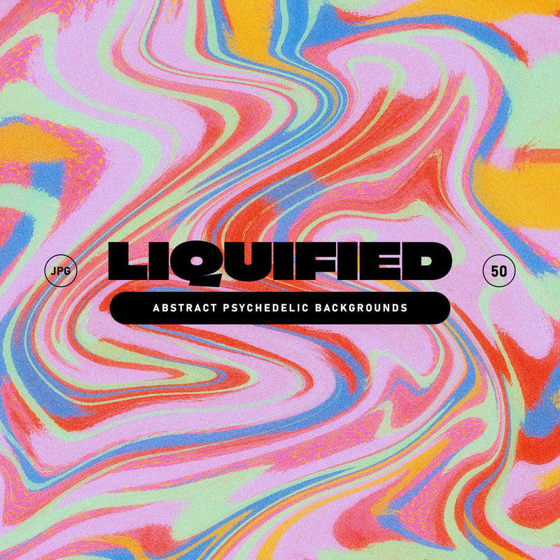 The 50 Liquid Retro Textures set includes 50 marble-like, psychedelic-inspired textures in a 3600x3600px resolution. These flat JPGs, suitable for Photoshop, Affinity Photo, Procreate, and Canva, can be easily color-modified to fit any format, whether square, portrait, or landscape.