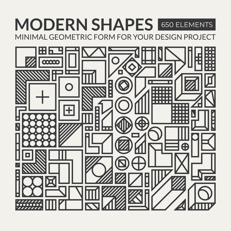 The 650 Minimal Geometric Shapes set is a comprehensive collection of 130 design elements in 5 different styles, all of which are easily editable. This set includes various file formats compatible with a range of vector editing software, making it a versatile tool for graphic design.