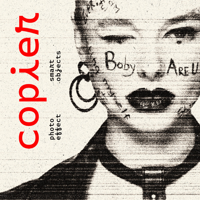 The Grunge Copier Photo Effect includes two high-quality PSD files (4500x3000 px and 3000x4500 px, both at 300 dpi) designed for Photoshop, featuring Smart Object layers for complete customization. The product also comes with a help file to assist users in applying the effect easily.