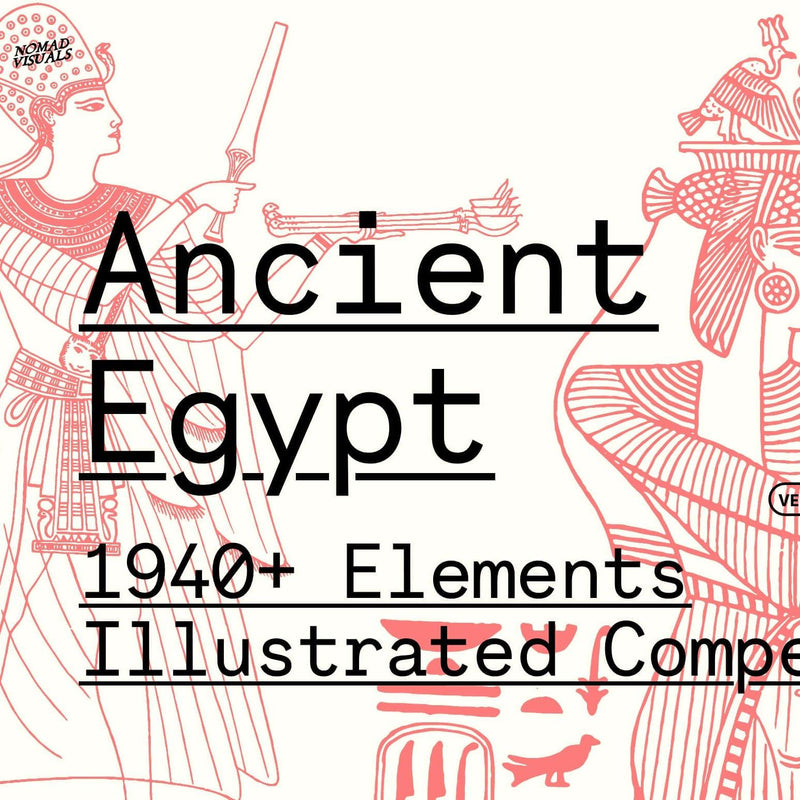 The Ancient Egypt Illustrations is a comprehensive collection of over 1940 illustrations, offering a visual exploration of the civilization's rich history, culture, and daily life. The set includes depictions of Pharaohs, hieroglyphics, gods, goddesses, and iconic symbols like the sphinx and ankh. The collection, compatible with Photoshop, Illustrator, Lightroom, Indesign, Procreate, and Figma, comes in PNG, AI, and EPS formats, with each artboard