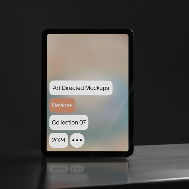 The ARTD-C07-Ipad-012 is an 11" iPad Air mockup featuring adjustable reflections, designed for use in Photoshop. This product is categorized under device mockups and is compatible with various design projects involving Apple tablets.