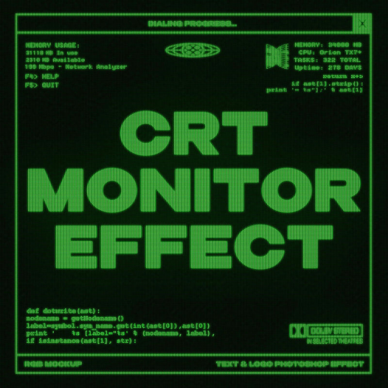 The CRT Monitor Text & Logo Effect is a Photoshop-compatible asset designed for branding logotypes or presentation elements. It features Smart Object Layers for easy text insertion, includes Adobe library's fonts, offers three color options, and comes as a high-quality PSD file at a resolution of 4500x3000px and 300dpi.