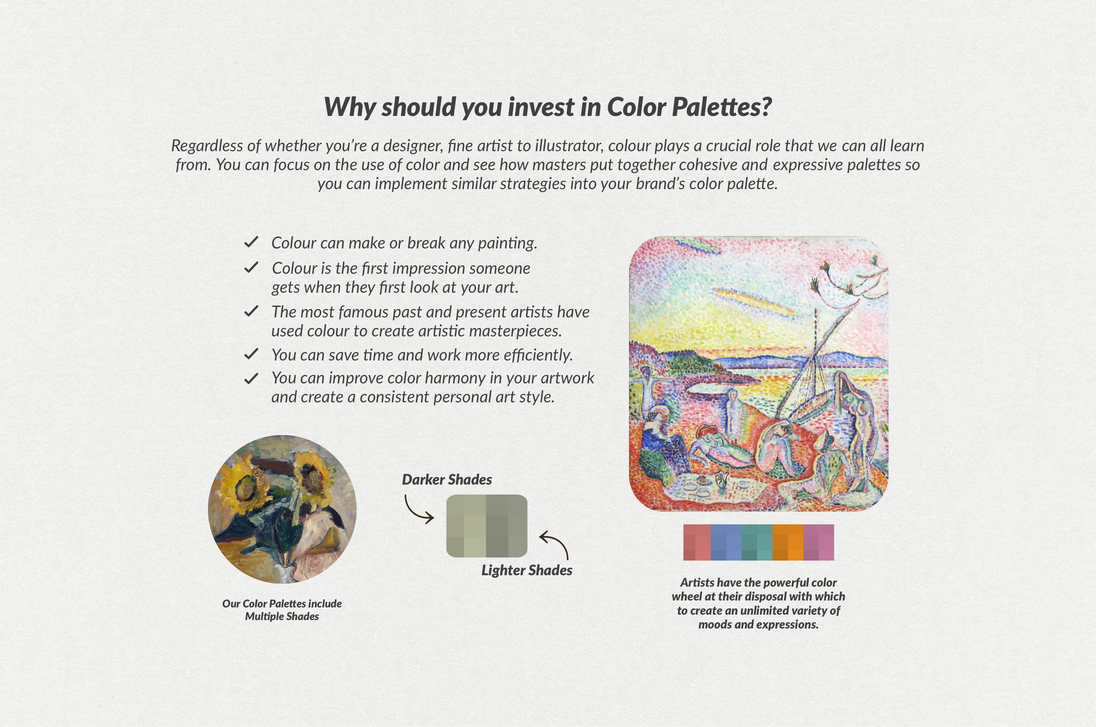 Ideal for vibrant and expressive digital illustration and graphic design. Perfect for branding, posters, and album covers, ensuring cohesive and impactful color palettes inspired by master artists.
