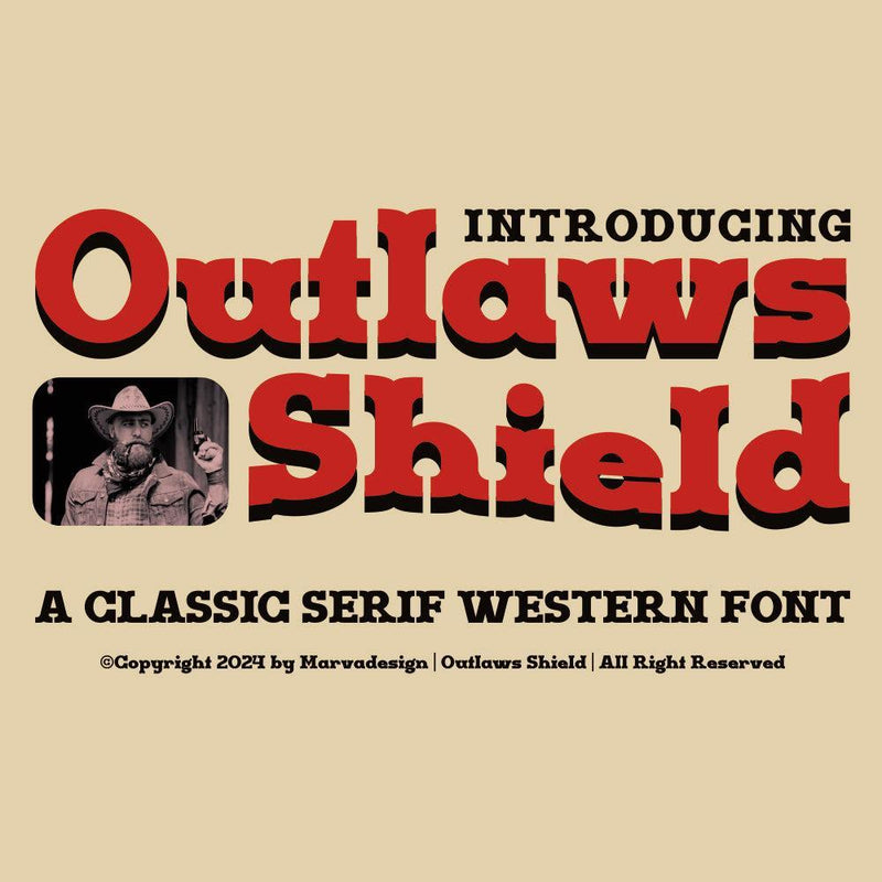 Outlaws Shield is a Western Serif font featuring bold, slab-serif letterforms with subtle serifs that reflect the rugged spirit of the Old West. Designed with precision, it offers a sturdy, slightly weathered appearance suitable for various display purposes.