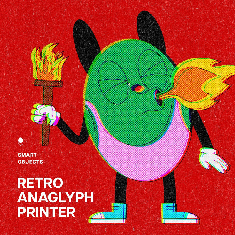 The Anaglyph Printer Design Template includes two high-quality PSD files (4500x3000 px and 3000x4500 px, both at 300 dpi) with Smart Object layers for easy customization. Compatible with Photoshop, it allows users to quickly add their graphics and make adjustments for high-quality image effects. A help file is also included.