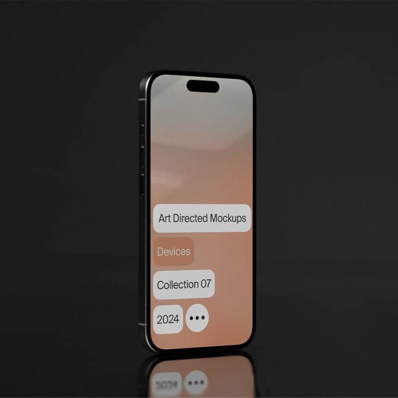 The ARTD-C07-Iphone-032 is an iPhone 15 Pro mockup featuring adjustable reflexes, designed for compatibility with Photoshop. This product is categorized under device mockups and includes tags such as iPhone, Apple, mobile, and phone.