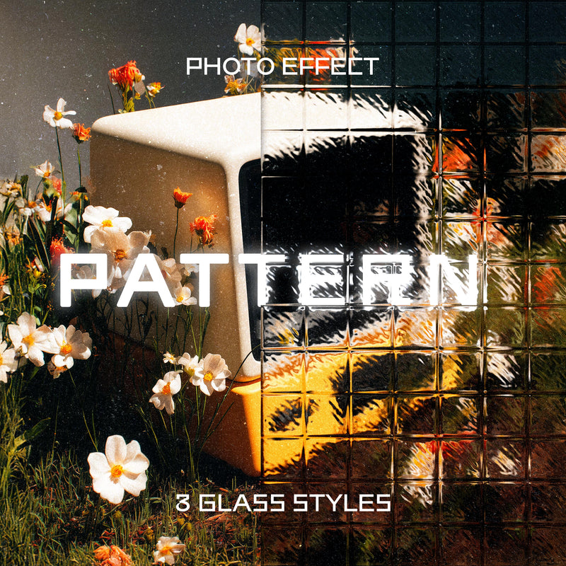 The Pattern Glass Photo Effect includes two high-quality PSD files (4500x3000 px and 3000x4500 px, both at 300 dpi), three effect options, and a help file for easy navigation. Designed for Photoshop, it allows for quick edits and layered control through Smart Objects and built-in adjustment layers.