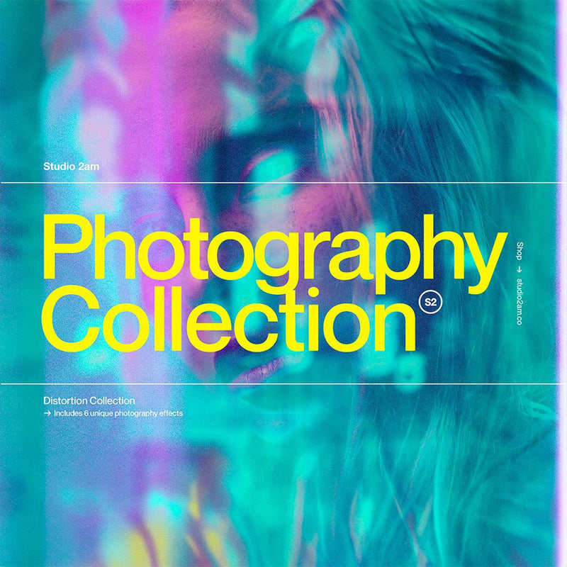 The Photography Collection is a bundle of six popular photo effects and templates, offering a 50% discount. The collection includes Reflex, Glow, Bitmap, Converge, Prizm, and Broken, compatible with Photoshop, Affinity Photo, Lightroom, and Procreate. Each product's individual page provides full details on what's included, usage, and compatibility.