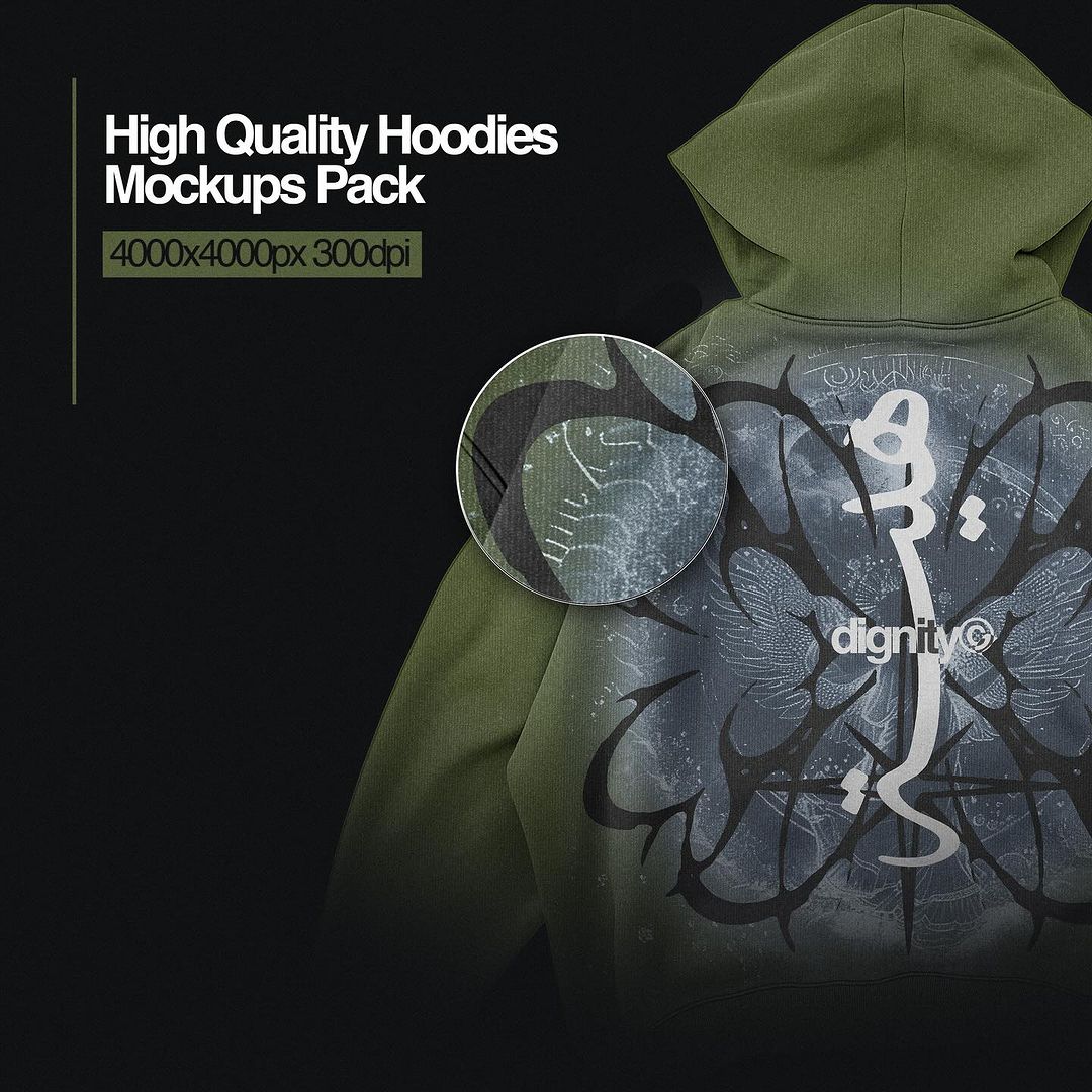 The Realistic 10 Mockups Oversize Hoodies pack is a high-quality Photoshop-compatible product featuring ultra-realistic textures and materials. It offers full customization, including the ability to change the hoodie color, design, brand label, and drawstring, with a free design on each mockup.