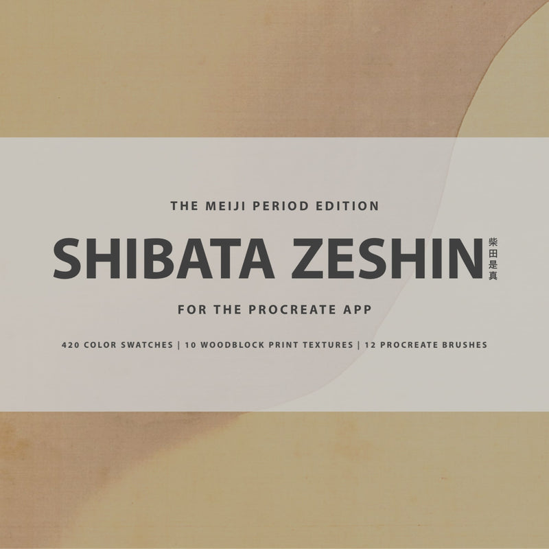 The Shibata Zeshin Procreate Kit includes 420 color swatches, 12 Procreate brushes, and 10 Ukiyo-e textures inspired by the works of Shibata Zeshin, all designed for use with Procreate. Additionally, it provides a Spotify playlist link for a musical experience and offers 24/7 free support.