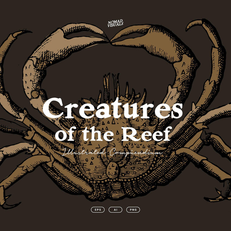 "Creatures of the Reef" is a collection of 120 vectorized illustrations of reef creatures from the Renaissance era, available in PNG, AI, and PDF formats. Compatible with Photoshop, Illustrator, Indesign, Procreate, Sketch, Figma, and Canva, it offers a wide range of marine life images for various design projects.