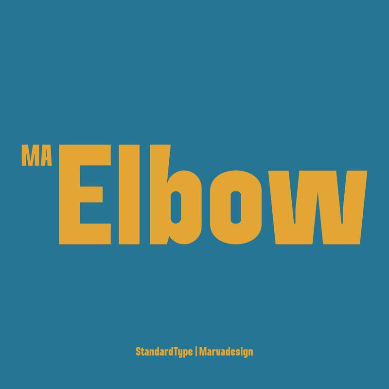 Ma Elbow is a modern sans serif typeface that features a range of font variants, including Regular and Bold weights, each designed with robust strokes and distinct character. Its meticulous attention to detail ensures coherence across the family while providing a strong and clear typographic presence.