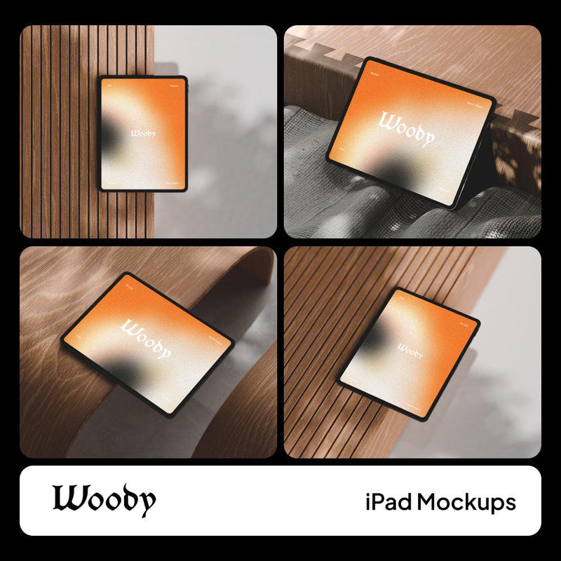 The Woody iPad Mockups is a collection of four high-resolution, wooden-themed mockup scenes compatible with Photoshop. It offers easy-to-edit Smart Object layers and well-organized PSD files, ideal for showcasing iPad designs, branding, and website designs with a minimalist and natural aesthetic.