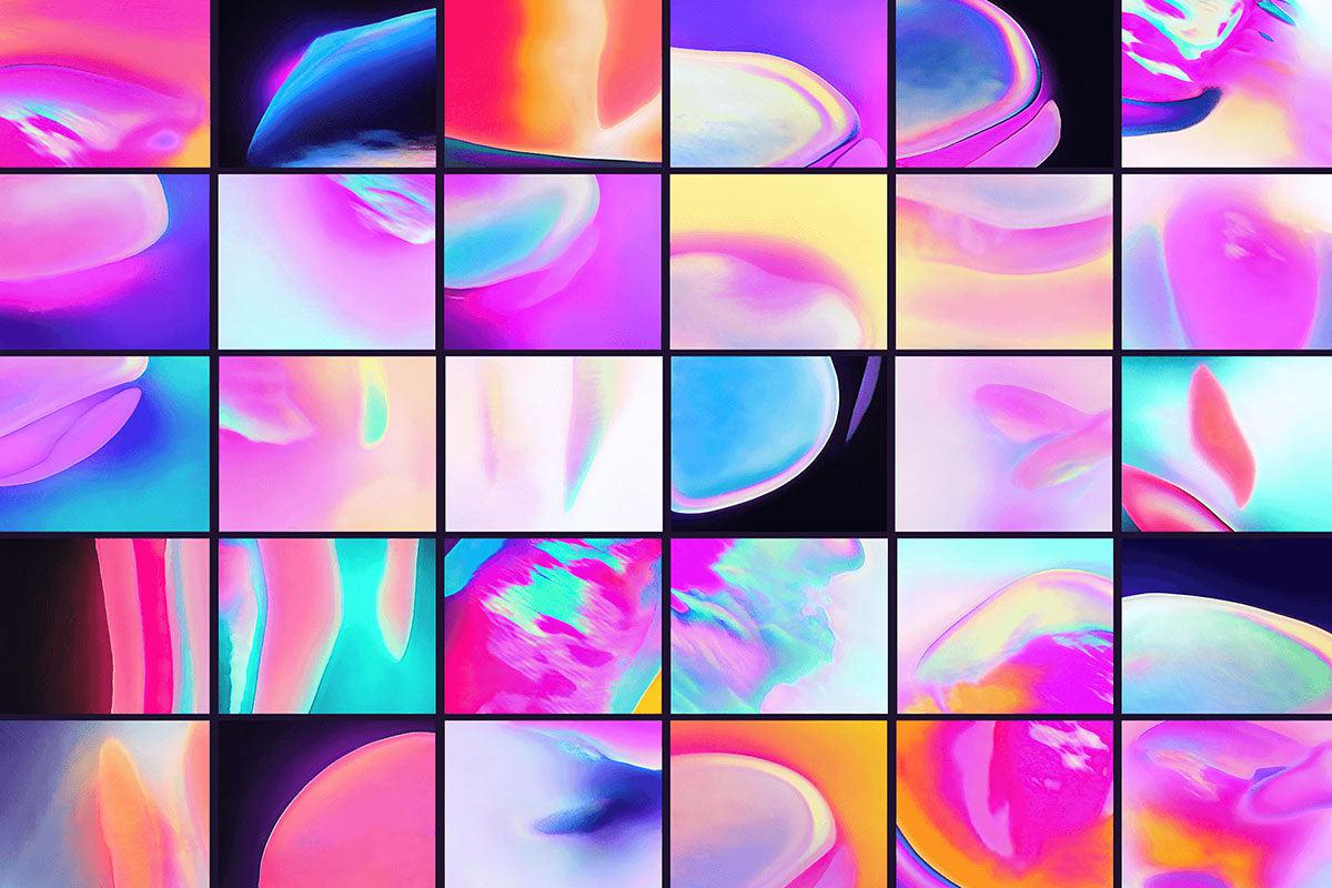 The Neonic 2 is an updated collection of organic neon gradients, suitable for both digital and print mediums. It includes 30 high-resolution PNG and JPEG image files, compatible with Photoshop, Affinity Photo, Procreate, and Canva.
