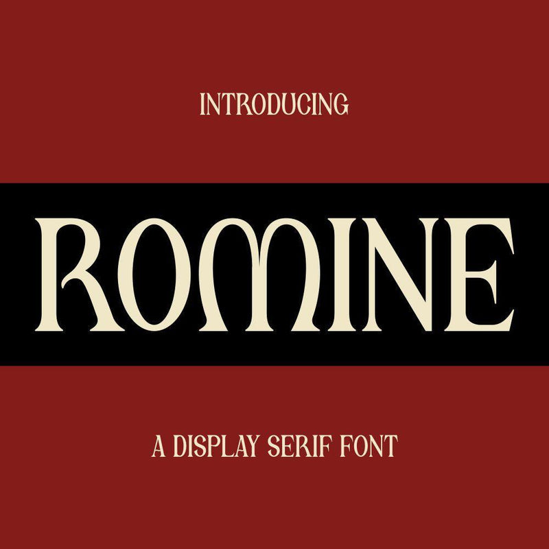 Romine is a serif display font characterized by its elegant and well-balanced letterforms that blend classical serif elements with a modern sensibility. Designed for a refined visual impact, it features intricate details that convey sophistication and timeless beauty.