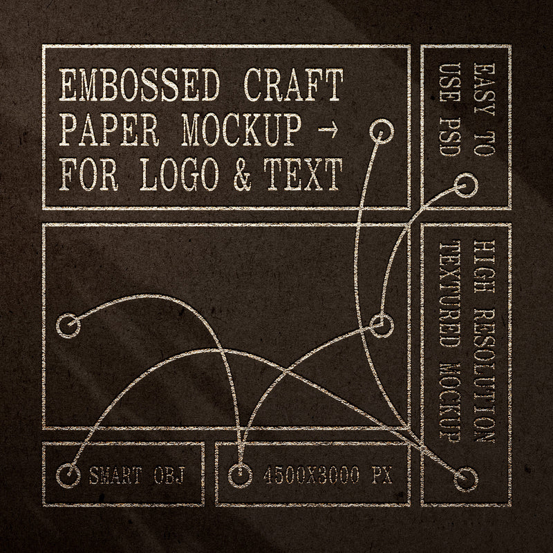 The Foil-Stamped Paper Logo Mockup is a high-resolution PSD file (4500x3000 px, 300 dpi) featuring a realistic brown craft paper texture with lifelike foil embossing and three shadow overlays for added authenticity. It is fully customizable using Smart Objects, allowing for background color adjustments, and is compatible with Photoshop.
