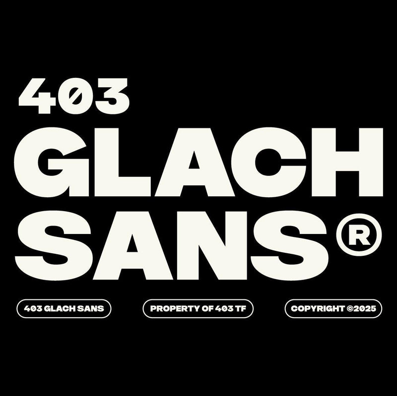 403 Glach is a bold sans-serif font featuring a contemporary geometric design, available in two styles: Regular and Slant. It offers a large glyph set for multilingual support and is characterized by crisp edges, well-balanced proportions, and excellent legibility, making it suitable for various design applications.