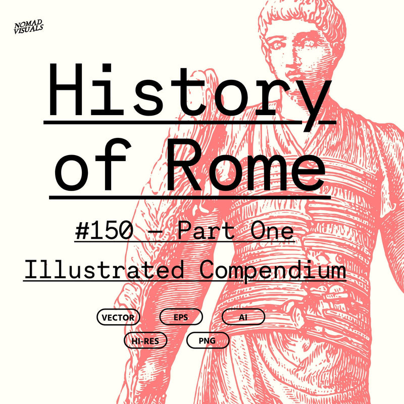 The History of Rome is a collection of 150 detailed illustrations depicting the people, culture, and daily life of Ancient Rome. The set includes PNG and vector files, compatible with Photoshop, Illustrator, Procreate, Indesign, Figma, and Sketch, making it a versatile resource for historians, designers, and enthusiasts.