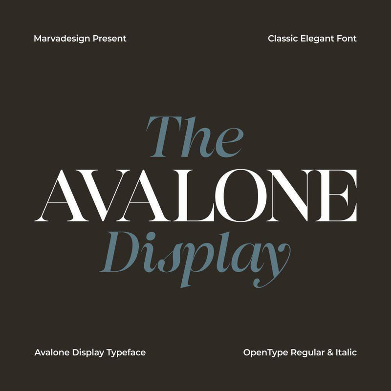 Avalone is a sophisticated typeface available in two styles: Regular Serif and Italic. The Regular Serif style features classic serifs for a traditional look, while the Italic style offers a graceful slant, making Avalone a versatile font suitable for various design projects.