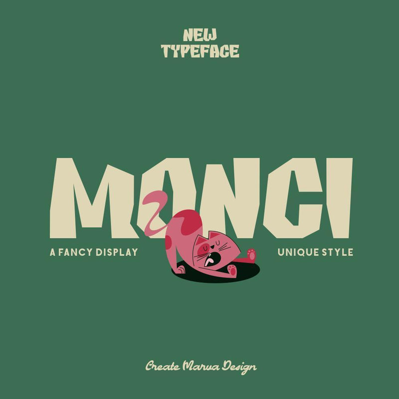 Monci is a distinctive display typeface featuring bold geometric shapes and expressive, irregular letterforms. It includes uppercase and lowercase letters, numerals, symbols, and ligatures, making it versatile for headlines and branding projects while maintaining readability and a unique visual identity.