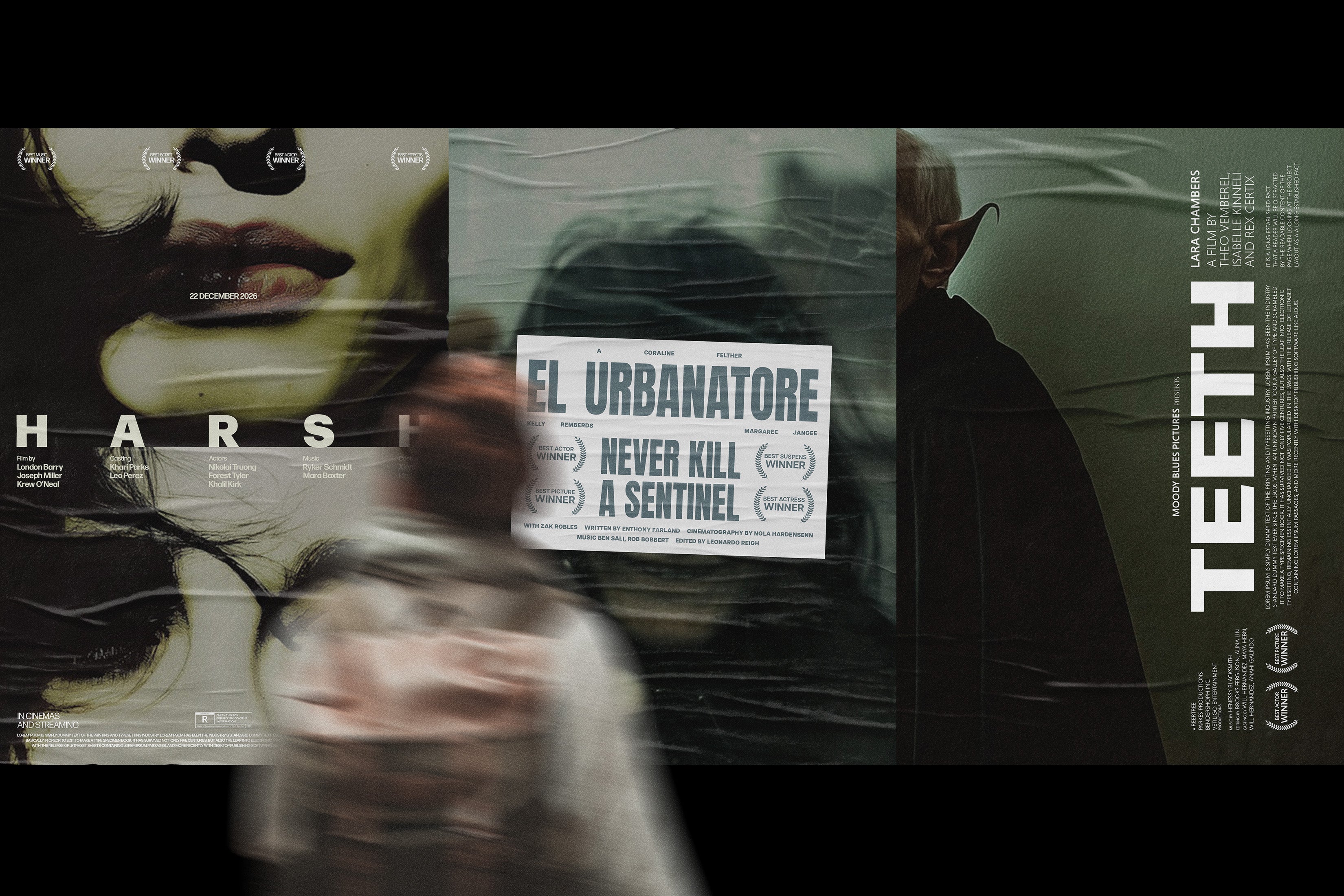Ideal for cinematic graphic design and visual storytelling. Perfect for film posters, branding for festivals, and promotional materials for podcasts, ensuring a professional and polished aesthetic that captures the essence of diverse genres.