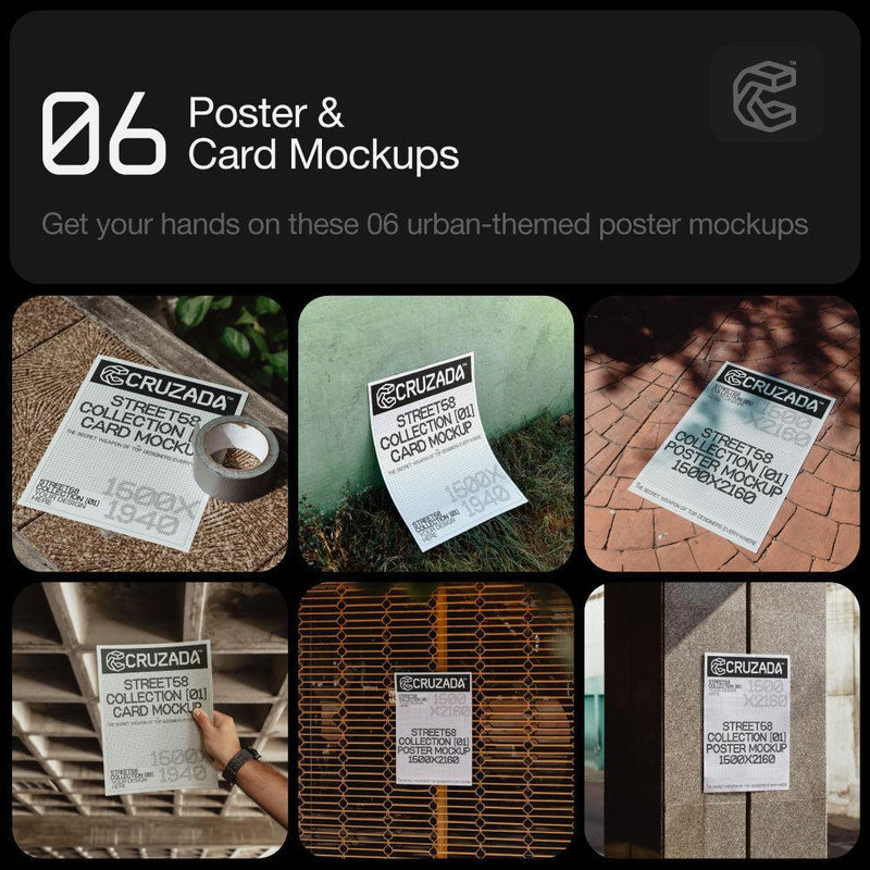 The Poster and Card Mockups Street 58 bundle includes 6 urban-themed poster mockups inspired by the brutalist architecture of downtown Maracaibo, Venezuela, created in collaboration with photographer Emerson Bravo. This package features layered PSD files and a mockup manual, compatible with Photoshop.