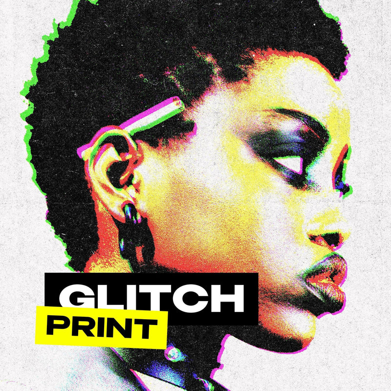 The Glitch Print Photo Effect is a customizable Photoshop resource featuring two high-quality PSD files (4500x3000 px and 3000x4500 px, both at 300 dpi). It includes Smart Object layers for easy editing and a help file, and is fully compatible with Adobe Photoshop 2023 and above.