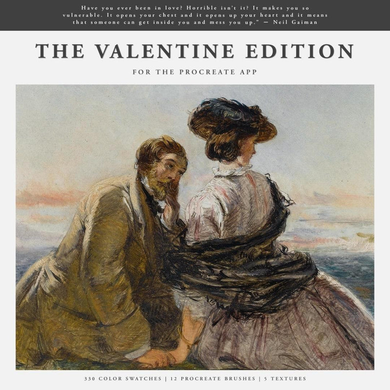 The Valentine Procreate Kit (2023) is designed for illustrators, font creators, and graphic designers, featuring 330 Procreate color swatches, 12 Procreate brushes, and 5 textures (canvas and papers). It is compatible with Procreate and includes 24/7 free support.