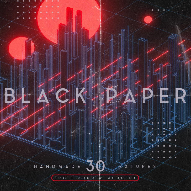 The Black Paper Textures set includes 30 high-resolution (6000 x 4000 px, 300 dpi) textures made from carefully manipulated black paper sheets. These textures can be used to create a grunge paper effect in your designs, and are compatible with Photoshop, Affinity Photo, Procreate, and Canva.