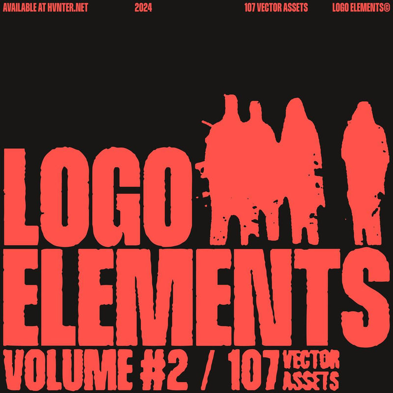 Logo Elements Vol.2 is a collection of 107 iconic vector assets available in SVG, PNG, PDF, and AI formats. It is compatible with various design software including Illustrator, Photoshop, Affinity Designer, Affinity Photo, Procreate, Sketch, Figma, and Canva.