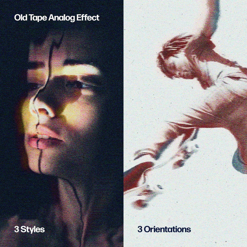 The Old Tape Analog Effect is a Photoshop-compatible product that provides a vintage VHS tape aesthetic to modern photography. It includes 12 PSD files in three different sizes and styles, along with three displacement maps for creating an analog screen effect. The product offers three distinct effects: Lost Signal, Transmission Break, and Screen Damage.