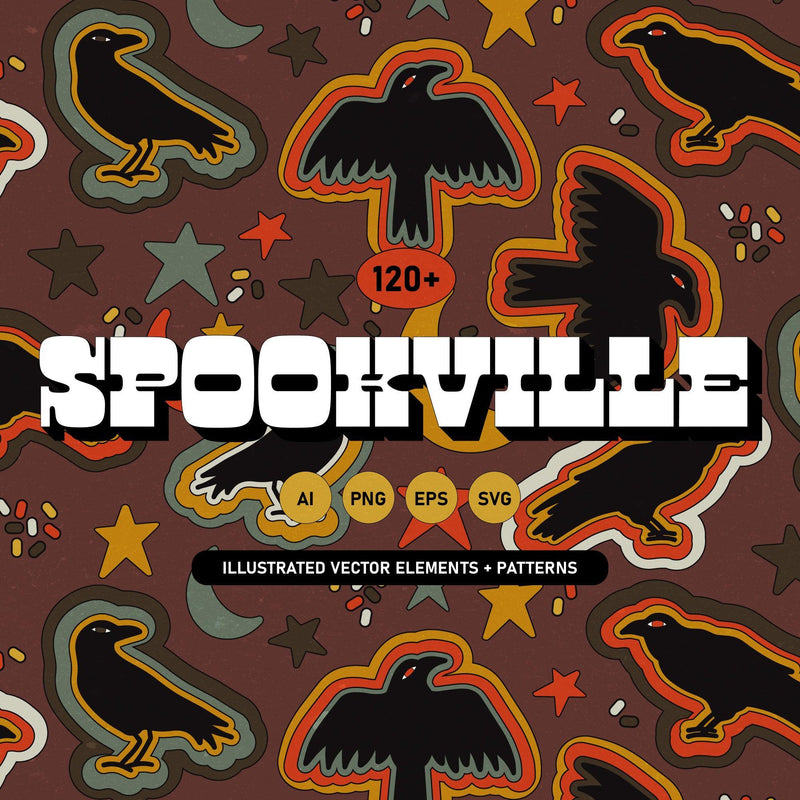 Ideal for retro-inspired graphic design projects. Perfect for Halloween-themed posters, branding, and social media graphics, ensuring a unique and vibrant aesthetic that captures the festive spirit.