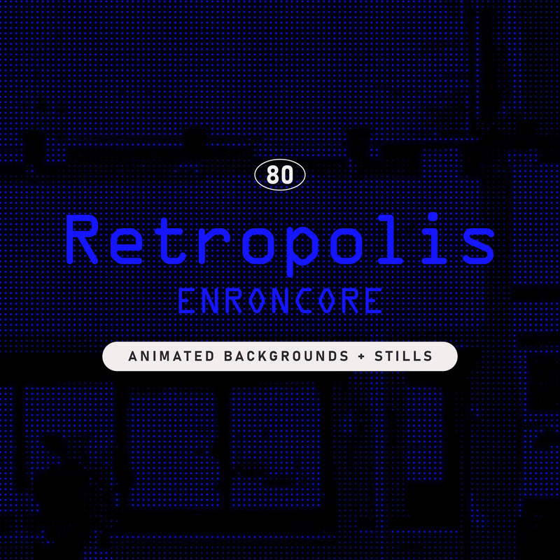 RETROPOLIS Animated Backgrounds includes a curated pack of 40 animated MP4 backgrounds and 40 matching stills in JPG format (3840x2160px). This collection features urban-themed visuals with a glitch aesthetic, inspired by 1990s business culture and pre-millennium office life.