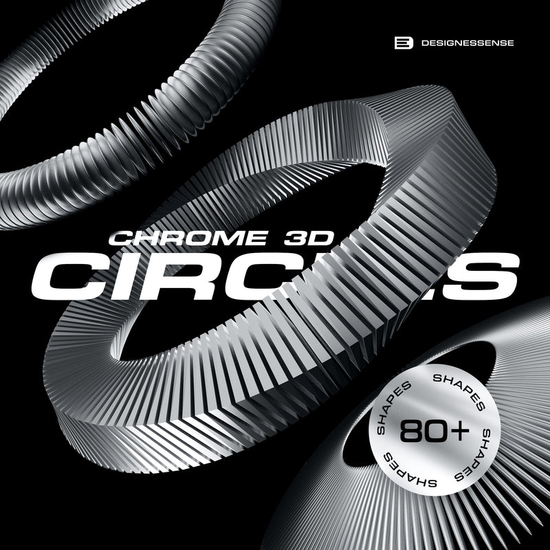The 3D Chrome Circles is a set of 82 unique, high-quality chrome 3D shapes, suitable for various creative projects. These shapes come in PNG format with a transparent background and high resolution of 5000 x 5000 px, and their color can be easily modified using Photoshop. The set is compatible with multiple platforms including Photoshop, Affinity Photo, Procreate, Sketch, Figma, and Canva.