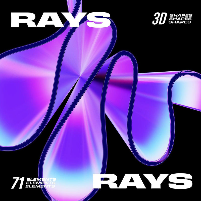 The 3D Rays Illustrations is a collection of 71 high-quality unique 3D glass rays. These design assets come in PNG format with a transparent background, have dimensions of 7500 x 7500 px, and are easy to use in various design apps like Photoshop, Figma, and Canva.