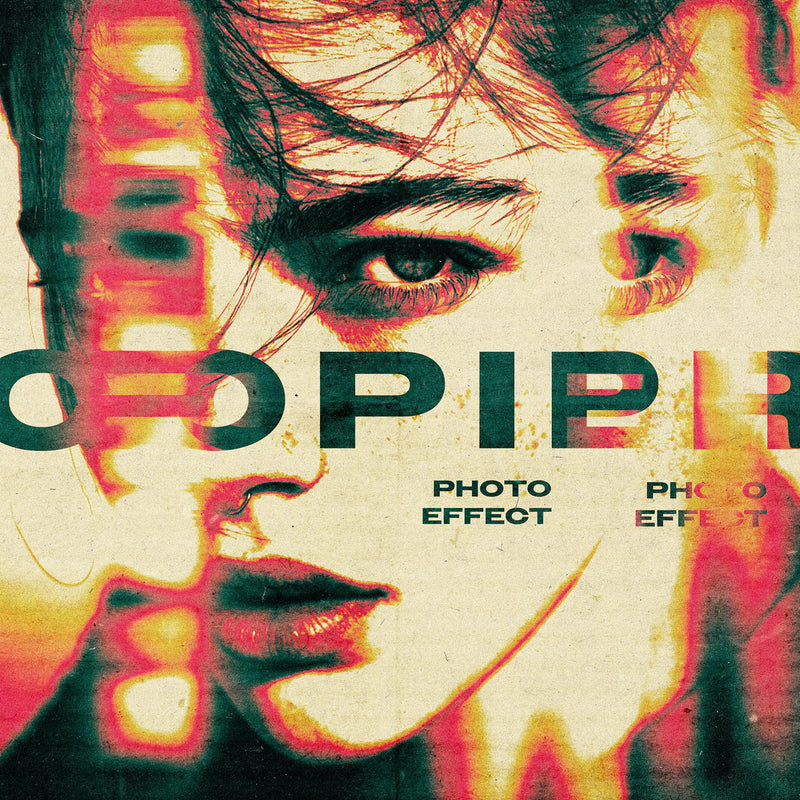 The Acid Copier Photo Effect is a Photoshop resource that features high-quality PSD files with a gritty paper base and red/teal color bleed, creating a misregistered edge effect. It includes two resolutions (4500x3000 px and 3000x4500 px, both at 300 dpi) and is optimized for the latest Creative Cloud version for full Smart Object support.