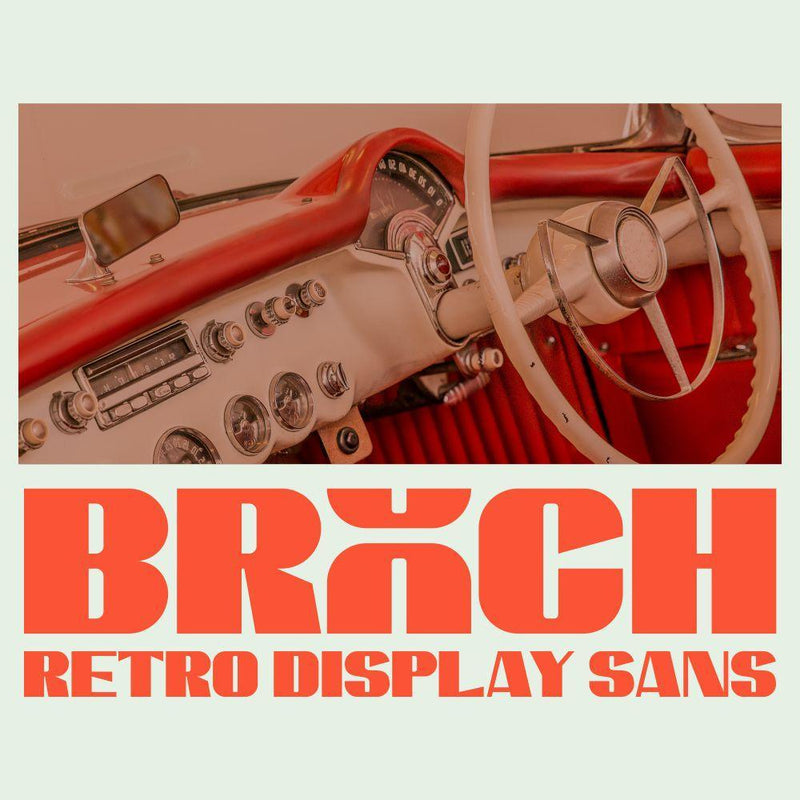 Brooch is a bold sans-serif retro typeface featuring wide, heavy letterforms and unique ligatures that add character to typography. Its design combines vintage charm with contemporary aesthetics, making it suitable for a variety of branding and display applications.