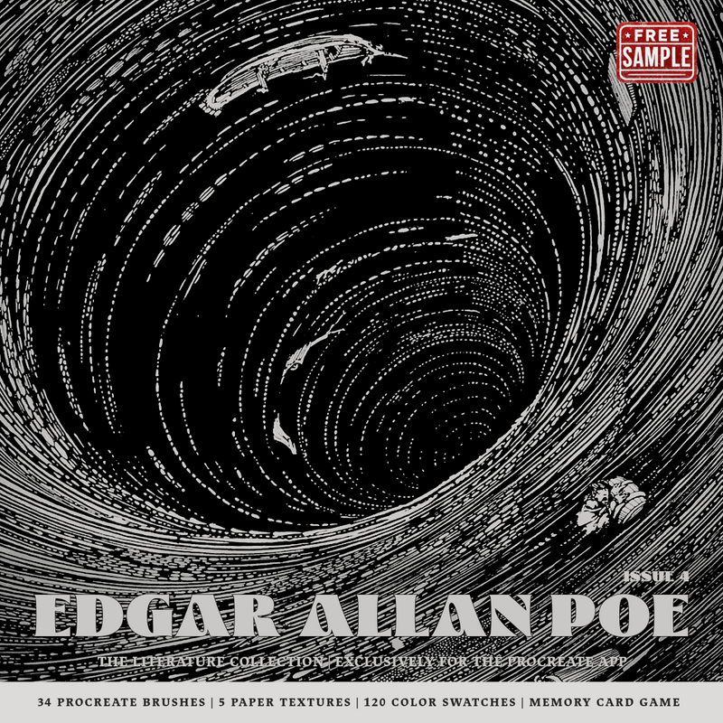 The Edgar Allan Poe Procreate Kit is a free download that includes a selection of brushes, color palettes, and paper textures compatible with Procreate. This sample allows users to evaluate the quality of the product before purchasing the full version.