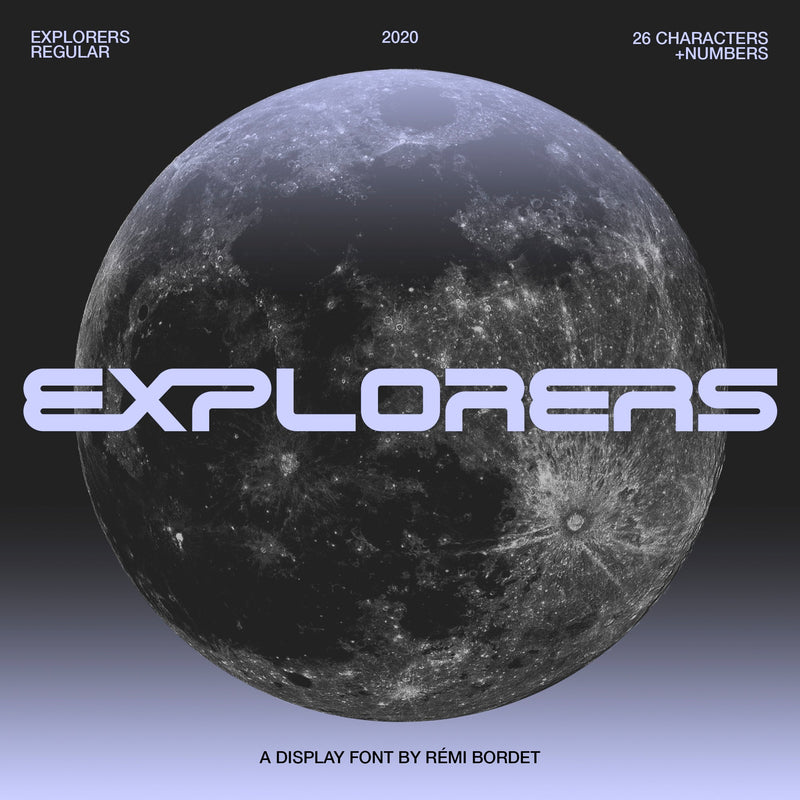 Explorers is a retro sci-fi inspired display font featuring a solid rounded structure and numerous ligatures. It is compatible with a wide range of design software including Photoshop, Illustrator, After Effects, Indesign, Lightroom, Affinity Designer, Affinity Photo, Procreate, Sketch, Figma, and Canva.