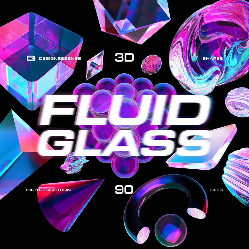 The Fluid Glass 3D Shapes is a digital product featuring a collection of 90 unique, high-quality 3D objects. It includes 225 PNG files with transparent backgrounds, available in high resolution (5000 x 5000 px) and from 4 different camera angles. The color of the shapes can be easily modified using Photoshop, Affinity Photo, Procreate, or Canva.