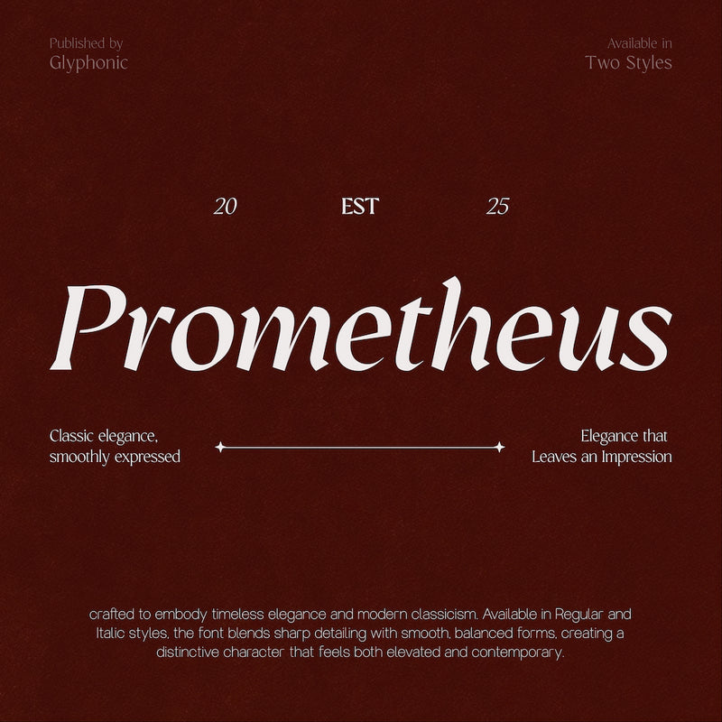GC Prometheus – Serif Family is a refined serif typeface that combines classical influences with modern precision, offering strong readability and balanced proportions. It includes uppercase and lowercase letters, numbers, punctuation, elegant serif detailing, and supports over 170 languages, available in OTF, TTF, and webfont formats.