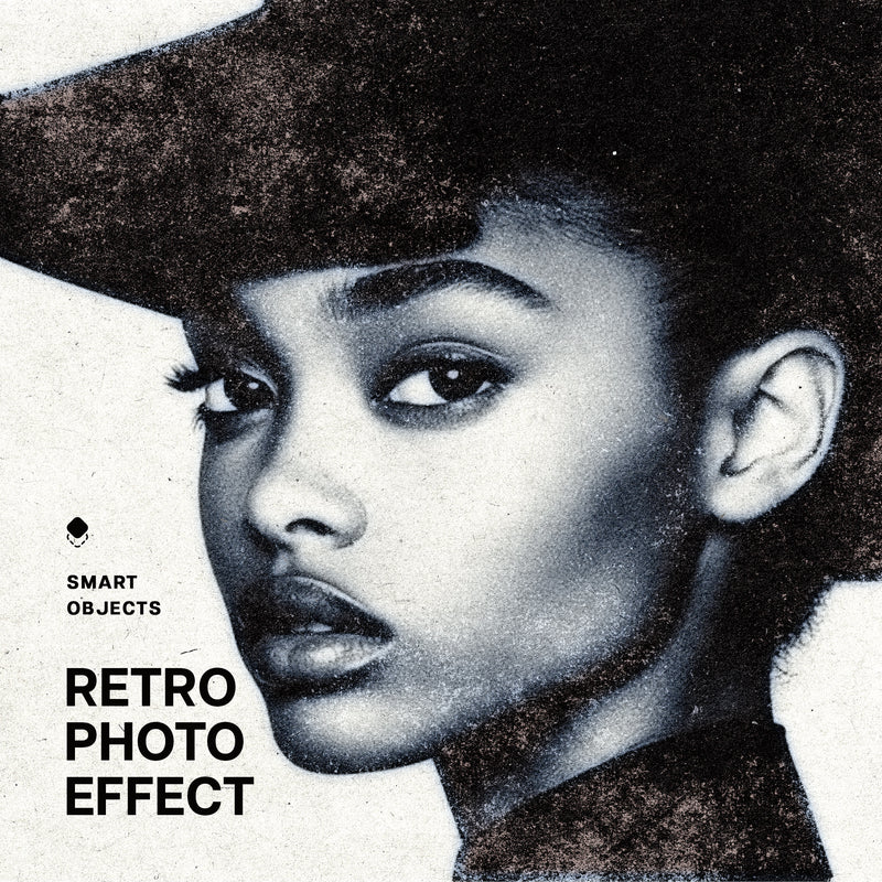 The Grunge Print Photo Effect includes two high-quality PSD files (4500x3000 px and 3000x4500 px, both at 300 dpi) designed for quick edits in Photoshop. It features a Smart Object for easy image replacement, layered control for adjustments, and comes with a help file for user guidance.