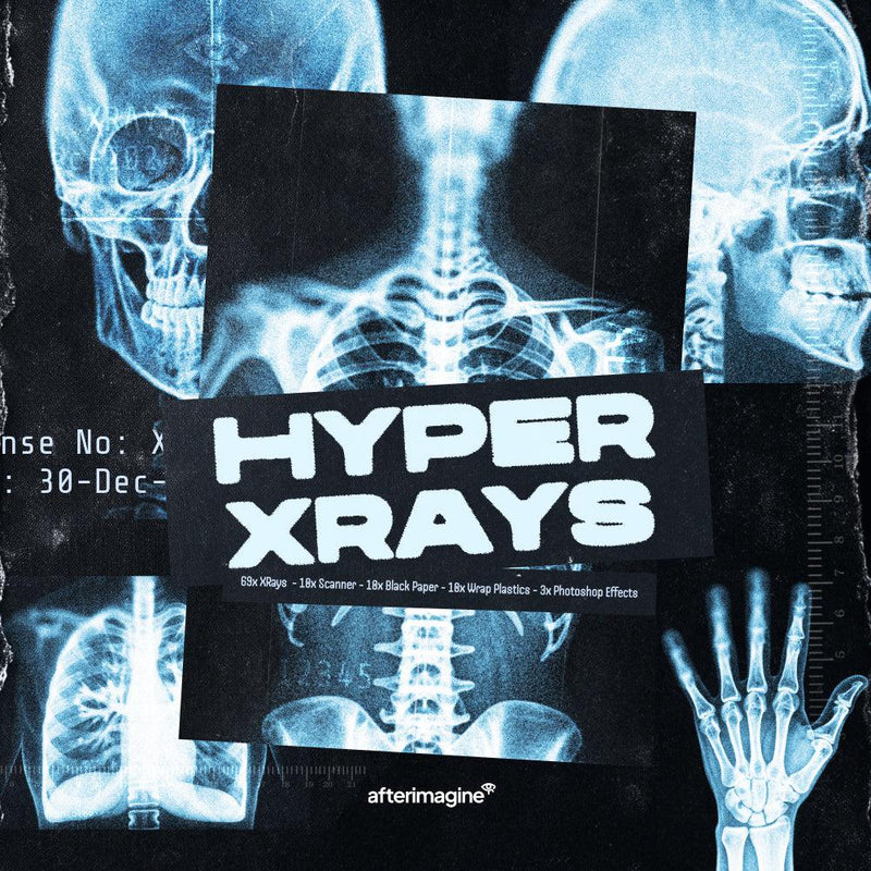 Hyper XRays is a digital pack containing 69 high-resolution JPEG files designed to add a distinct character to creative projects. The pack also includes bonus features like scanner textures, wrap plastic textures, black folded paper textures, and Photoshop effects. It is compatible with various design platforms including Photoshop, Illustrator, After Effects, Affinity Designer, Affinity Photo, Indesign, Procreate, Sketch, Figma, and Canva.