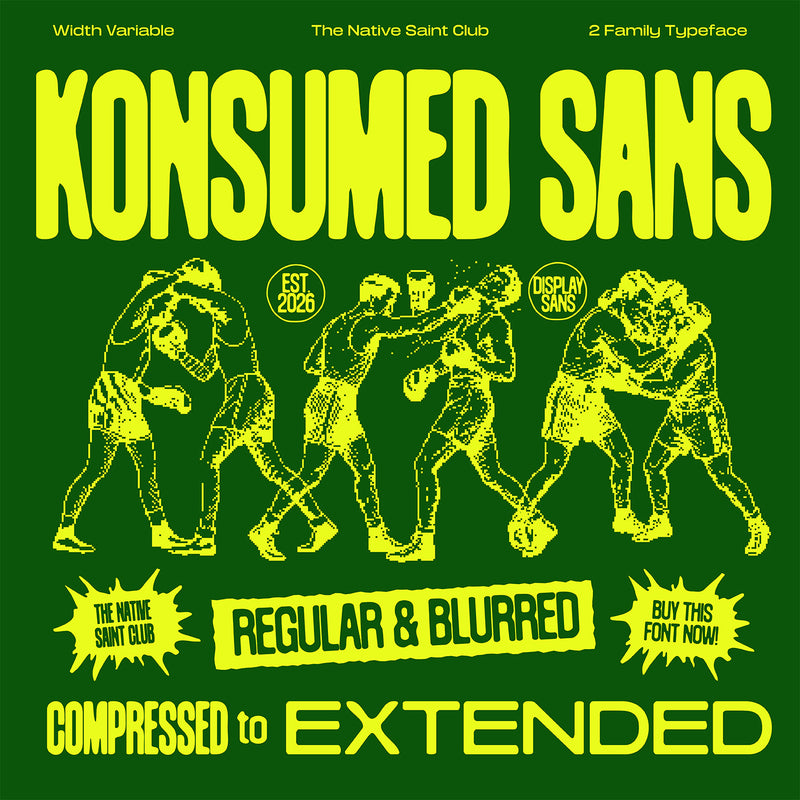 With a flexible width system from compressed to extended, Konsumed gives you full control to build strong layouts and eye catching headlines. Perfect for posters, branding, editorial design, sports graphics, packaging, and digital projects.
